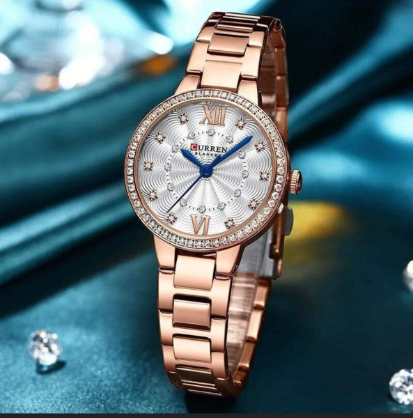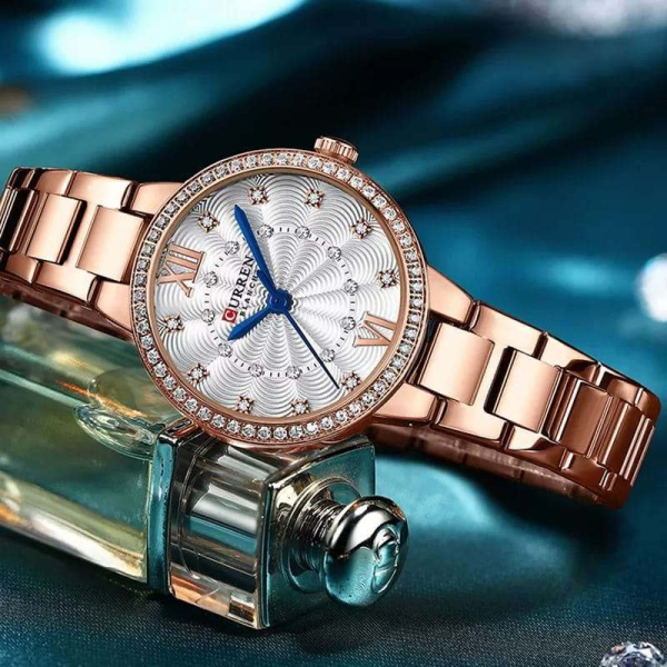 A unique women's watch from the Curren collection that Awear.gr brings to you at a very affordable price. With a steel bracelet in rose gold color, rose gold metal case and silver dial, decorated with rhinestones, it will be the watch that will make you stand out, taking off your everyday looks. It is waterproof to accidental contact with water, 3atm, and comes with a one-year warranty.