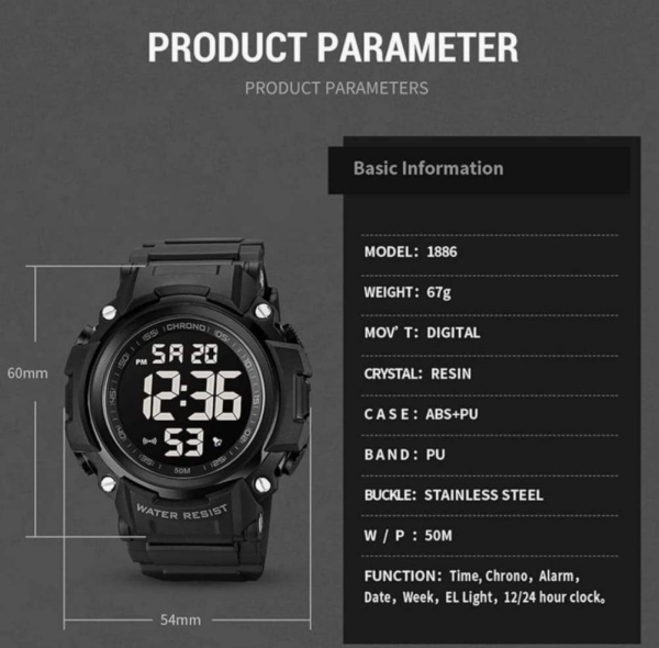 Movement: Digital,Precision meets style with a digital movement, offering accurate timekeeping and easy-to-read displays.