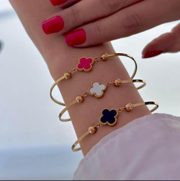 أساور ستانلس ستيل اللي ما بتغيّر لونها، دايمًا بتضل لامعة وجديدة. بثلاث ألوان حلوة: الأحمر، الأبيض، والأسود، لتناسب كل ستايل وكل وقت.